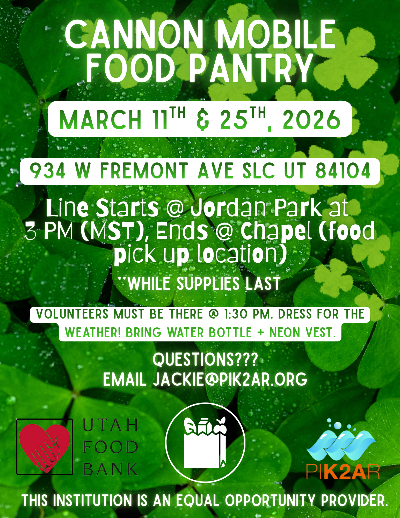 The Utah Food Bank in partnership with PIK2AR, holds a Bi-Monthly “Pop Up” Food Bank Event called, CANNON MOBILE FOOD PANTRY, where the Utah Food Bank generously donates and sponsors each Bi-Monthly (Twice Per Month) “Pop Up” Food Pantry Event, allowing PIK2AR to serve anywhere from 300 to 500 Low To Moderate Income Individuals in the Community, in partnership with the Utah Food Bank.